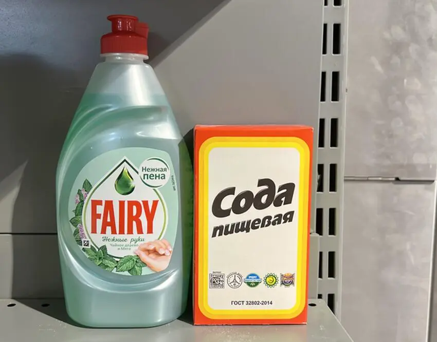 Оказывается, все просто. Нужно лишь в горячей воде растворить обычную пищевую соду и добавить этот приготовленный раствор в полупустой бутыль со средством для мытья посуды. Затем нужно хорошо взболтать бутылку и дать время, чтобы пена осела.
