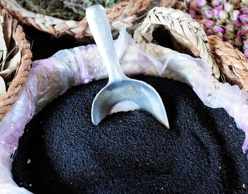 В блендере нужно перемолоть пять чайных ложек семян черного тмина — должен получиться мелкий порошок. Его следует переложить в форму для запекания, в нее влить 200 мл оливкового масла, размешать и поставить на кастрюлю с подогретой водой. В течение 45 минут на огне из тмина выйдут эфирные масла.